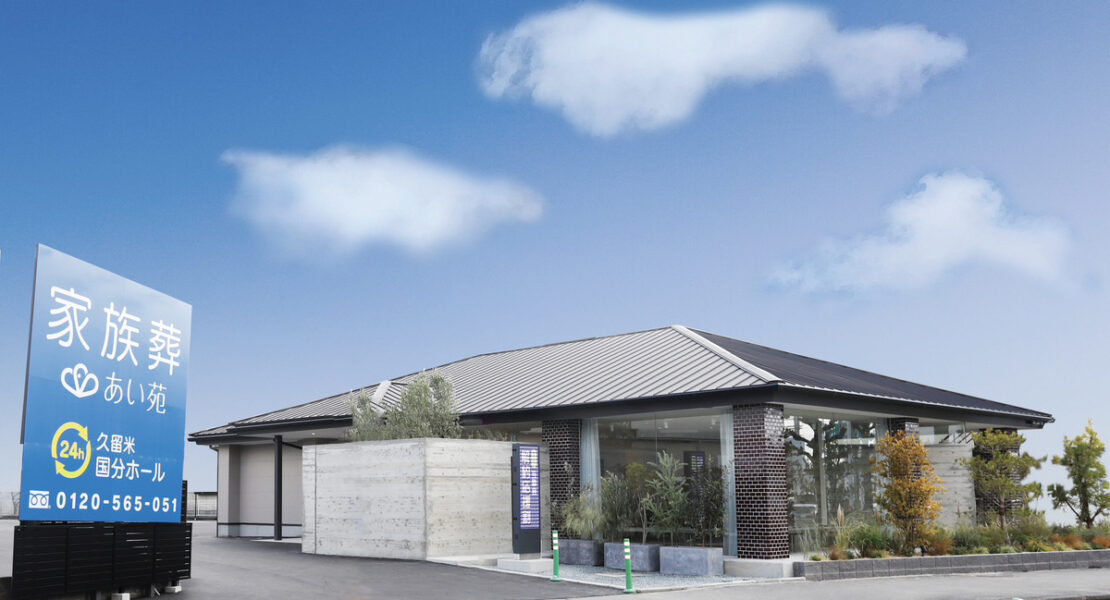 福岡県久留米市国分町、JR南久留米駅から徒歩10分。久留米市各所よりアクセス良好な場所に家族葬のあい苑久留米国分ホールはございます。